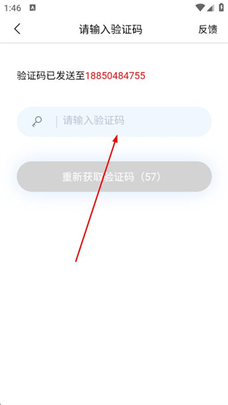 2、在輸入驗證碼頁面,填入收到的驗證碼,未注冊的手機號將自動完成注冊并登錄。