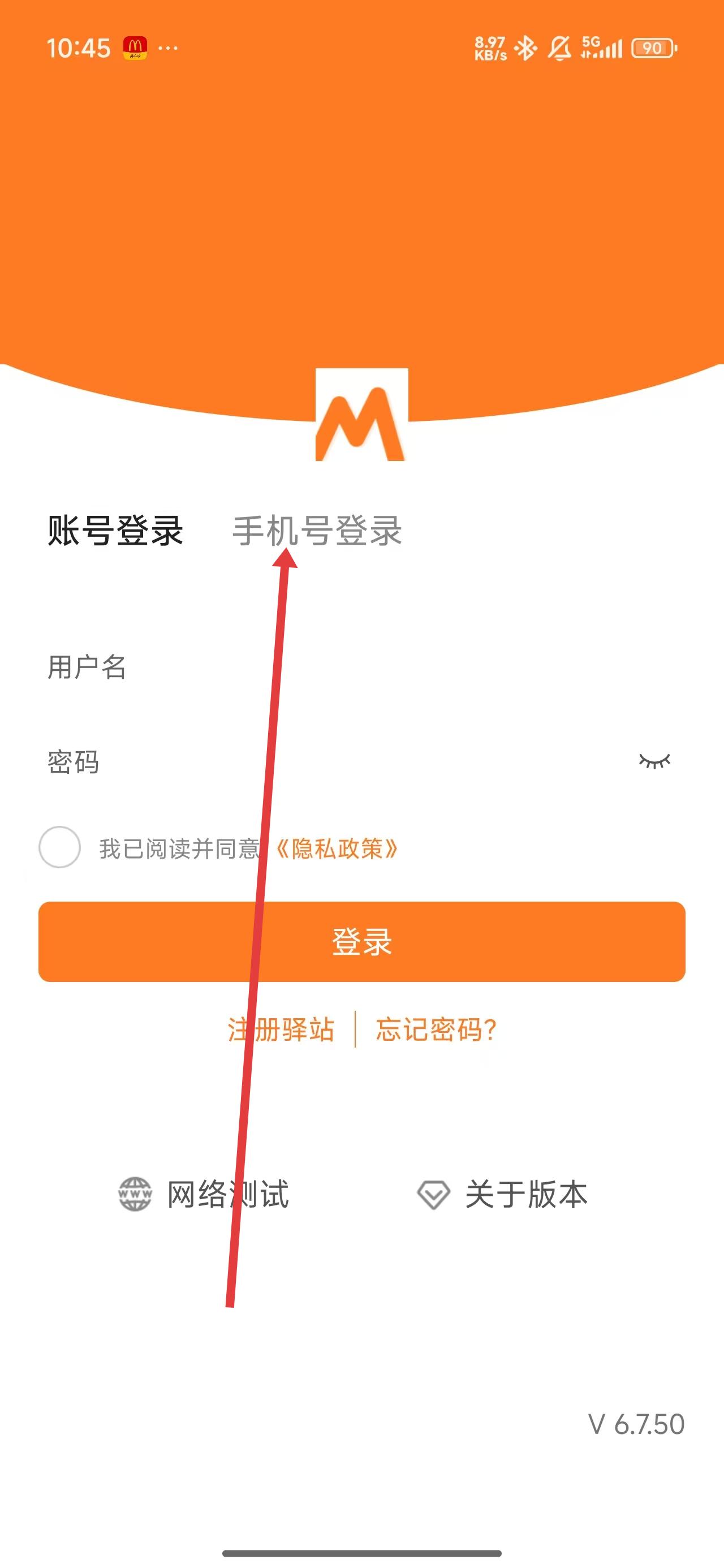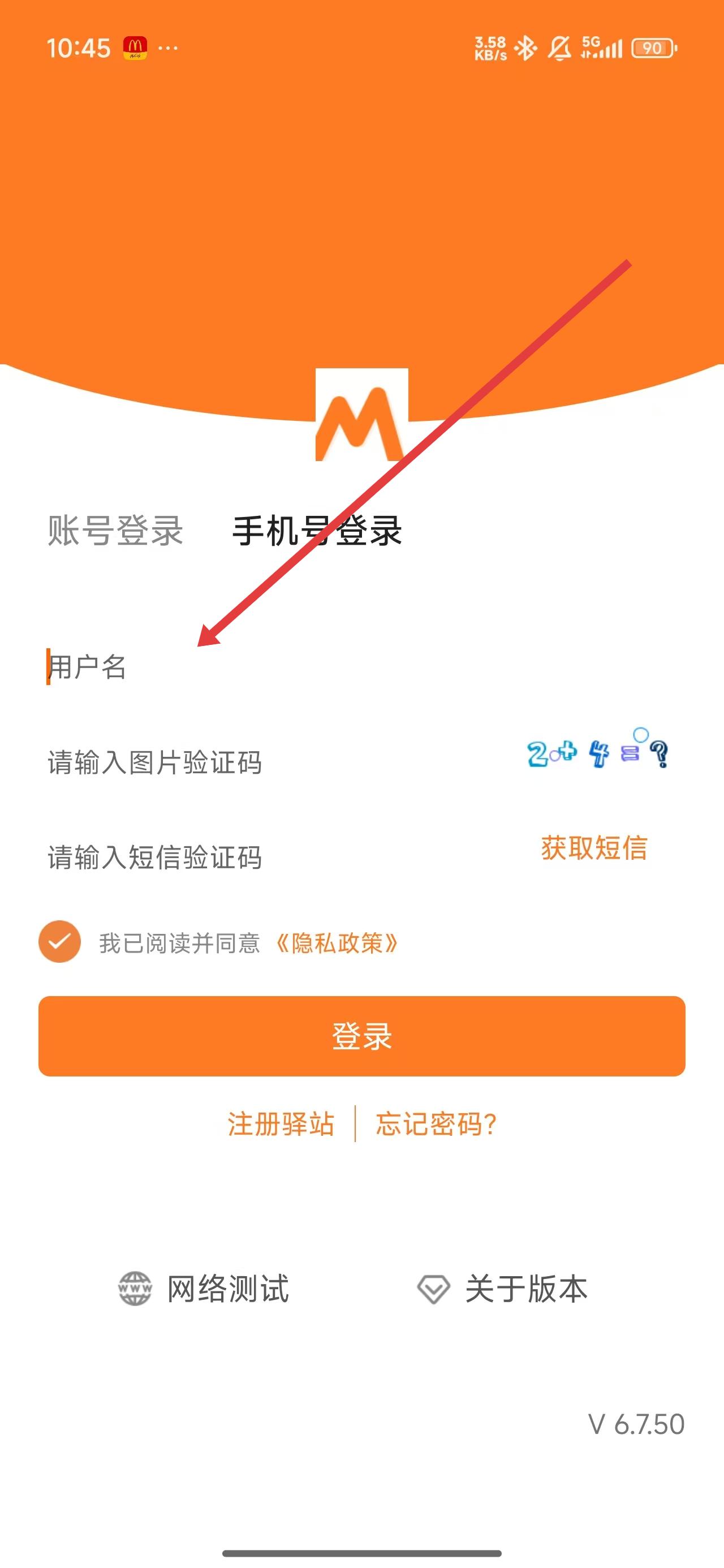 3、在手機(jī)號登錄界面中,在用戶名處輸入手機(jī)號以獲取短信登錄賬號。