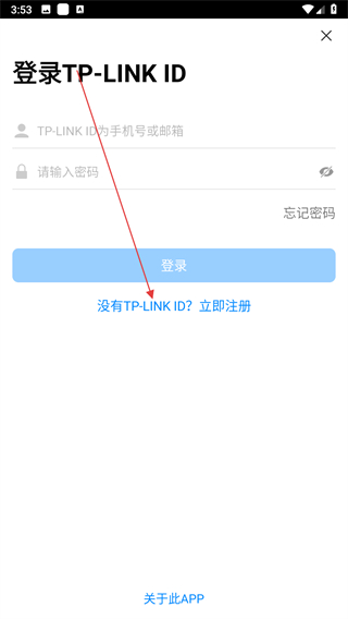 2、在登錄TP-LINK ID頁面中,點擊沒有TP-LINK ID?立即注冊選項。