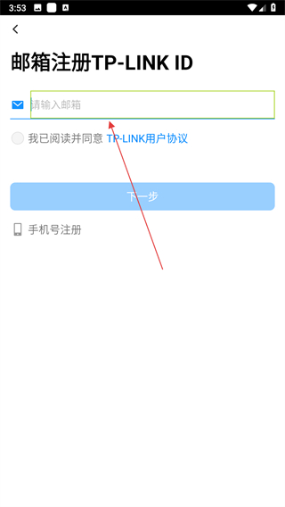 3、進入注冊頁面后,在郵箱注冊界面,輸入您的郵箱地址,然后點擊下一步。
