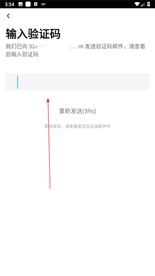 4、點擊下一步之后,應用會向您填寫的郵箱發(fā)送驗證碼郵件輸入收到的驗證碼。