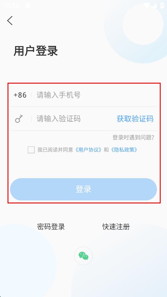 4、在用戶登錄頁面,輸入手機號,點擊獲取驗證碼并輸入驗證碼,勾選已閱讀并同意相關(guān)協(xié)議,點擊登錄按鈕。