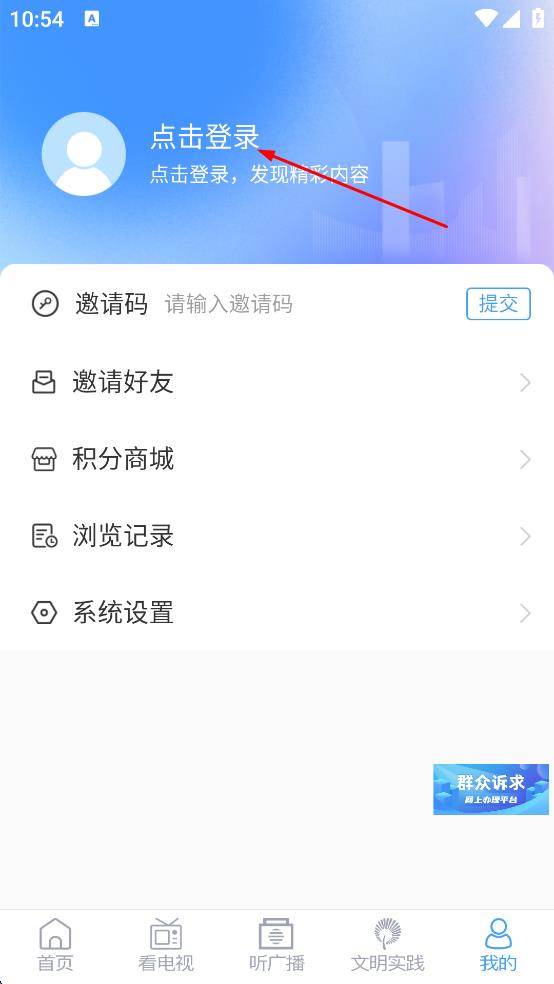 3、在我的頁面,點擊上方點擊登錄選項。