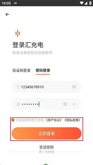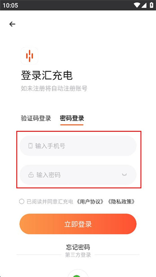 3、在密碼登錄界面輸入手機(jī)號和密碼。