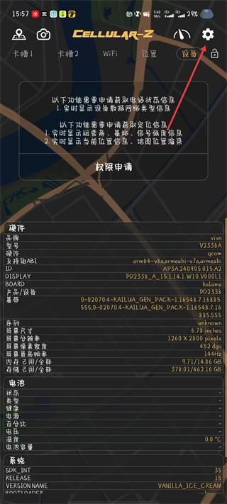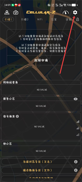 1、打開Cellular-Z應(yīng)用,點擊右上角設(shè)置圖標(biāo),進(jìn)入功能頁面。