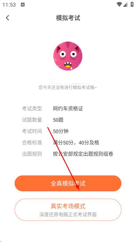 2、在模擬考試頁面,選擇真實(shí)考場模式。