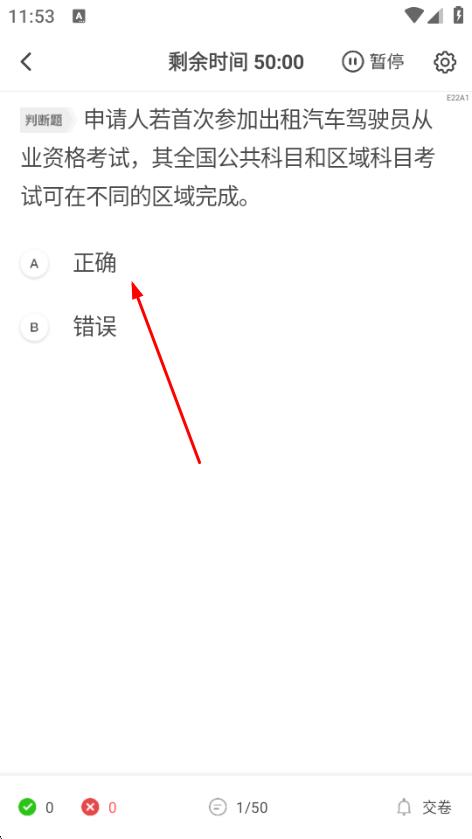 4、進(jìn)入答題界面,開始模擬考試,按照題目要求選擇答案即可。