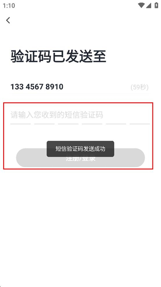 4、在驗(yàn)證碼輸入頁面,將收到的短信驗(yàn)證碼填入對應(yīng)輸入框,確認(rèn)填寫完成后點(diǎn)擊注冊或登錄按鈕即可。