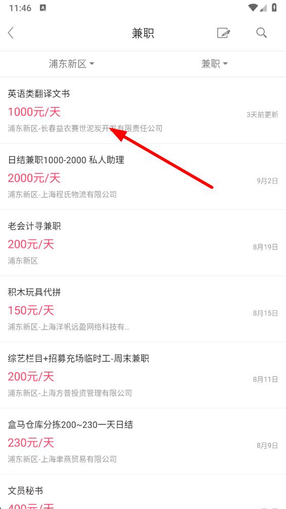 4、瀏覽篩選后的兼職崗位列表,選擇感興趣的崗位,點(diǎn)擊進(jìn)入詳情頁(yè)。