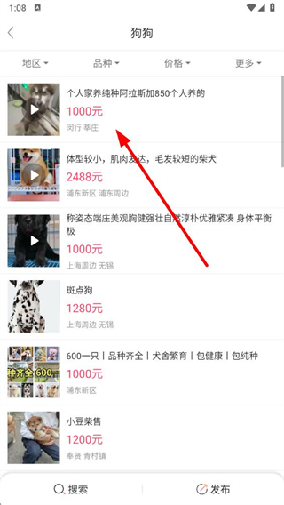 3、在狗狗列表頁(yè)面選擇心儀的寵物狗信息,點(diǎn)擊進(jìn)入詳情頁(yè)面。