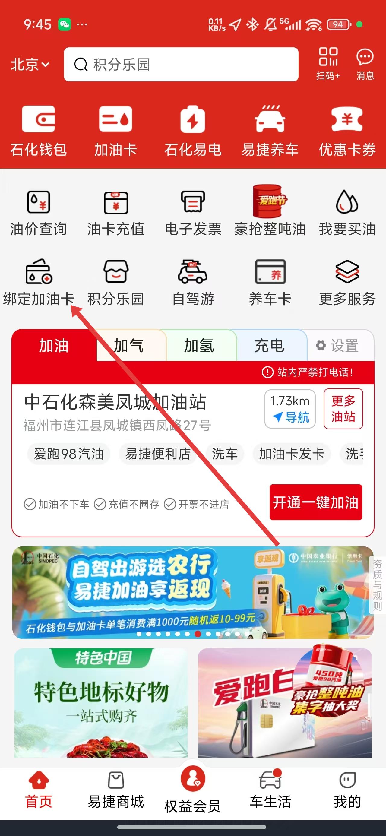 1、在進入到app后,在首頁中找到并點擊綁定加油卡選項,開始綁卡操作。