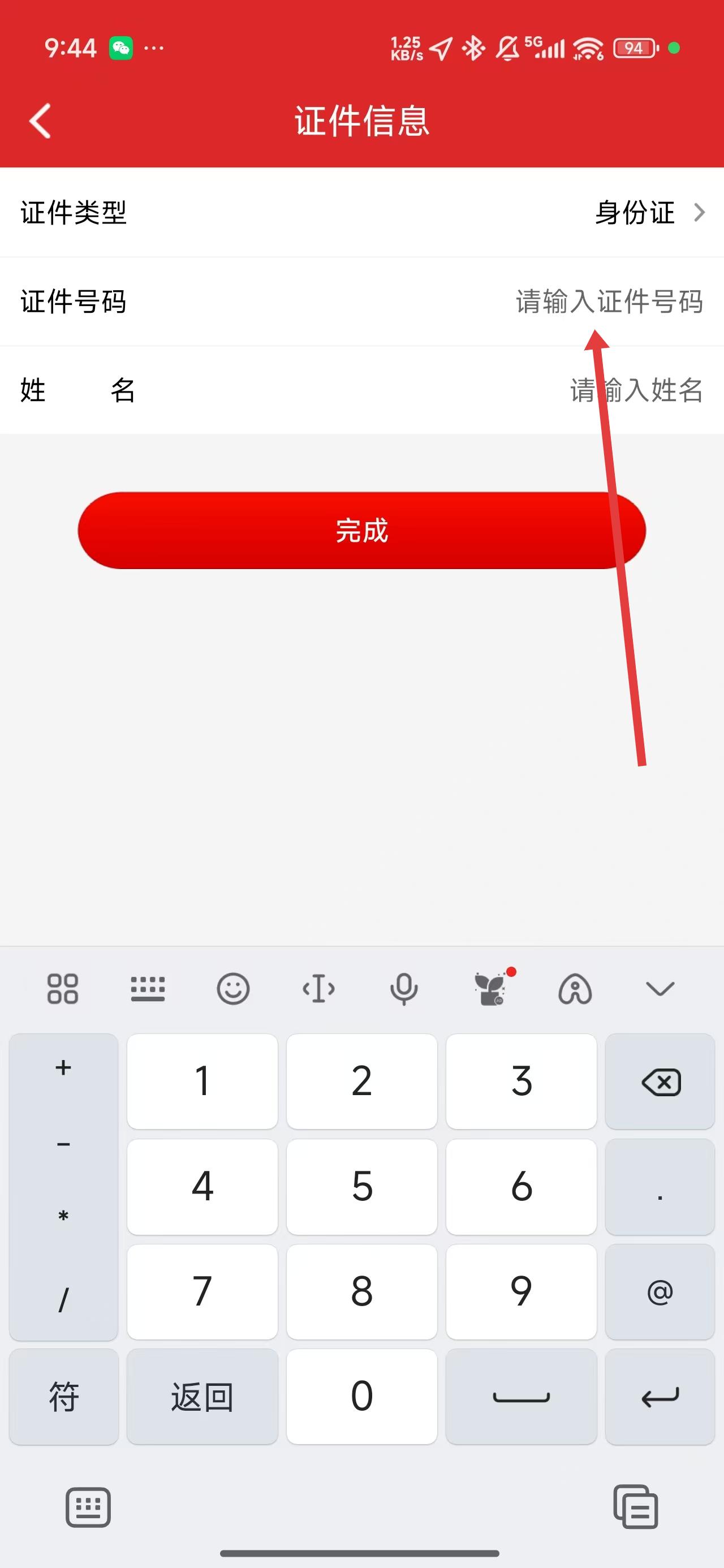 2、在執(zhí)行綁卡操作時,首先需在證件信息頁面填寫證件號驗證身份。