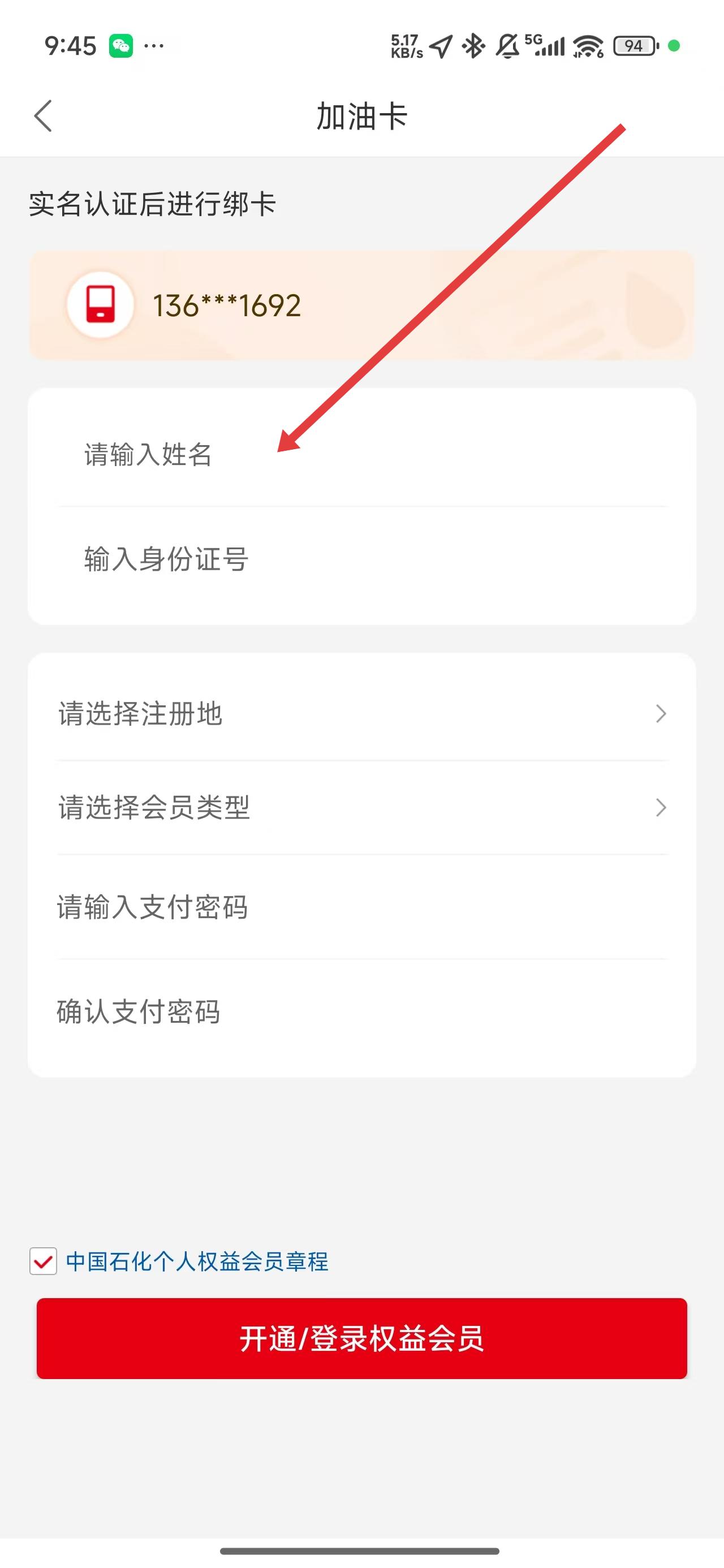 3、完成身份驗證后,跳轉(zhuǎn)到加油卡頁面依次輸入對應(yīng)信息后,在實名認證后進行綁卡。