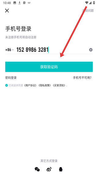 3、登錄界面輸入手機(jī)號(hào)碼,點(diǎn)擊“獲取驗(yàn)證碼”。