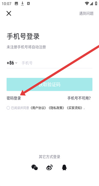 2、登錄頁(yè)面點(diǎn)擊“密碼登錄”,進(jìn)入密碼登錄界面。