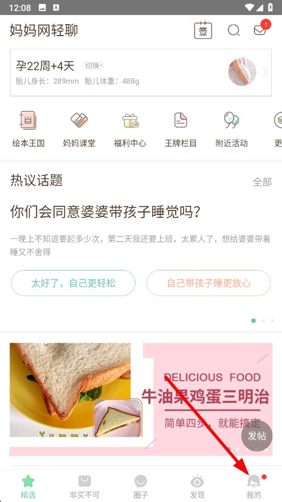 1、打開媽媽網(wǎng)輕聊app,點(diǎn)擊底部導(dǎo)航欄最右側(cè)標(biāo)有我的的圖標(biāo),進(jìn)入個(gè)人相關(guān)界面。