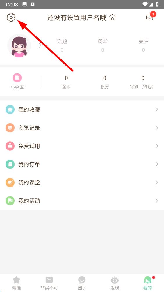 2、在個(gè)人界面中,點(diǎn)擊左上角的設(shè)置圖標(biāo),進(jìn)入設(shè)置頁(yè)面。