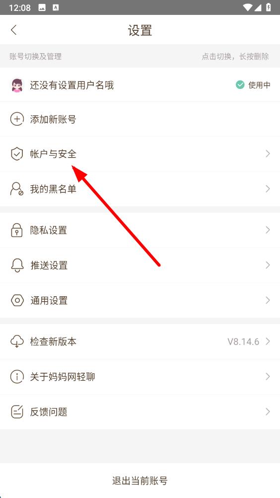 3、在設(shè)置頁(yè)面里,找到并點(diǎn)擊賬戶與安全選項(xiàng),進(jìn)入賬戶安全設(shè)置界面。