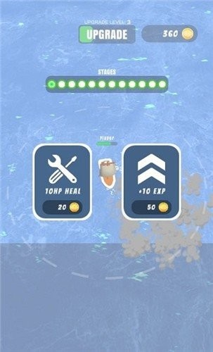 滑動(dòng)屏幕控制自己的戰(zhàn)艦在海面上移動(dòng),收集海上漂浮的各種資源,可以給戰(zhàn)艦帶來(lái)相應(yīng)的升級(jí)效果。