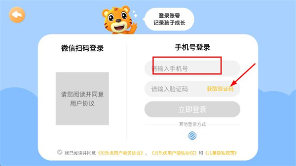 3、在登錄頁面,輸入需要登錄的手機號碼,并獲取驗證碼。