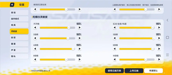 5、陀螺儀靈敏度可以按照下方去進行設置。