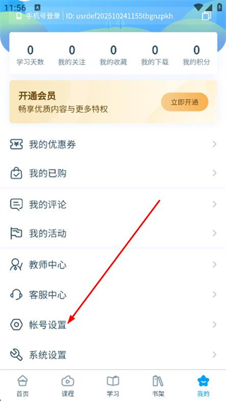 2、在我的頁面中,找到并點擊帳號設(shè)置選項。
