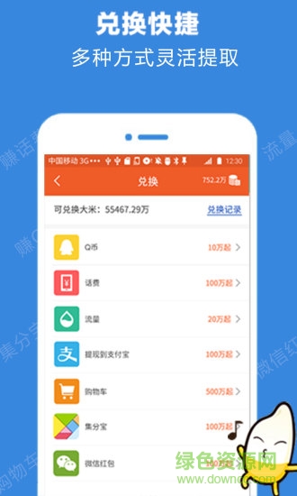 支付寶,微信,話費(fèi),流量,集分寶免費(fèi)兌換Q幣。