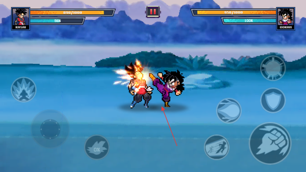 2、戰(zhàn)斗時,操控虛擬搖桿移動角色,點(diǎn)擊拳腳按鍵攻擊,遇到對手技能,按格擋鍵防御,積累能量后,觸發(fā)特殊技能按鍵,釋放強(qiáng)力招式制敵。