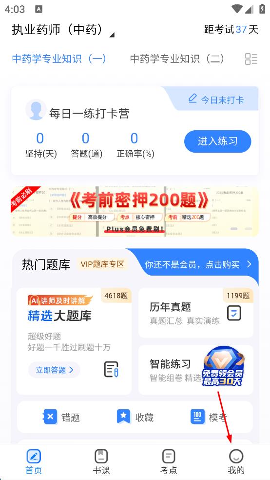 2、在考醫(yī)獅主界面,找到底部“我的”選項(xiàng),點(diǎn)擊該選項(xiàng),進(jìn)入登錄選擇頁(yè)面。