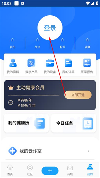 2、在我的頁(yè)面點(diǎn)擊登錄,進(jìn)入登錄頁(yè)面。