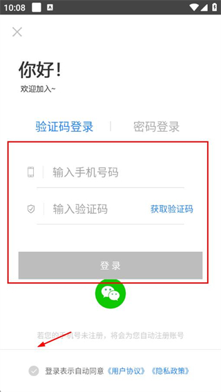 3、輸入手機(jī)號(hào)碼,填入驗(yàn)證碼,勾選用戶(hù)協(xié)議后,點(diǎn)擊登錄