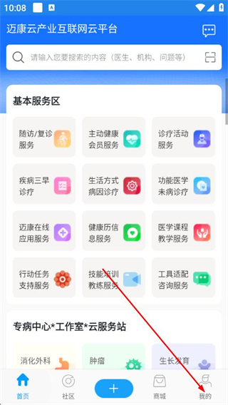 1、打開(kāi)邁康在線(xiàn)APP,點(diǎn)擊底部導(dǎo)航欄中的我。