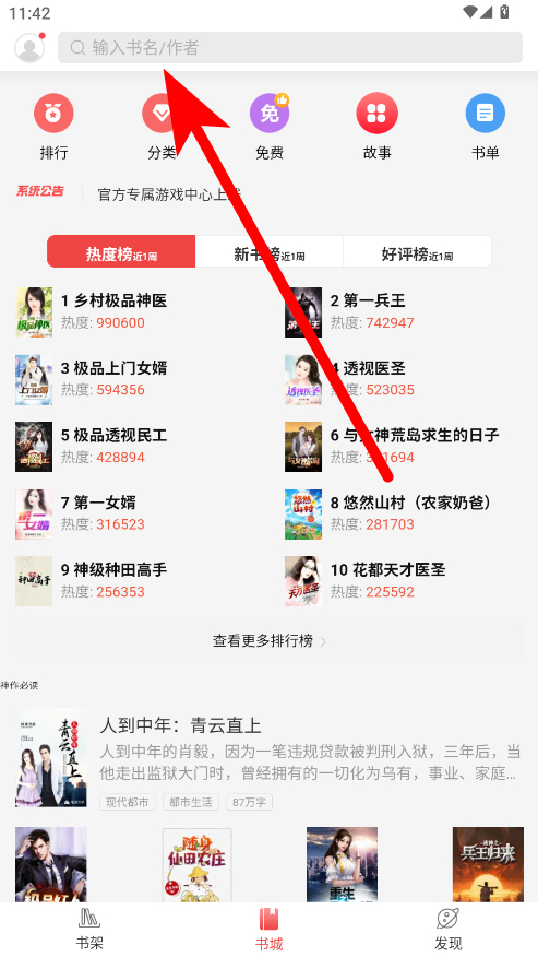 2、在書城頁面上方的搜索欄中,輸入想要查找的作者名字,點擊搜索按鈕。