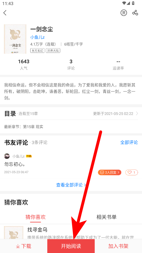 4、點擊該作品,即可查看該作者相關信息和作品內容,還能點擊開始閱讀進行閱讀。