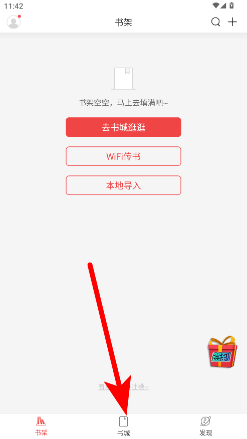 1、打開蜜桃小說進入書架界面,點擊底部導航欄中的書城選項,進入書城頁面。