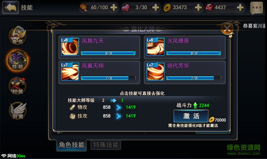 和裝備一樣,技能也是有技能大師的,當所有技能達到了一定等級后,就能從技能大師手上提升等級,增加戰(zhàn)力,但是和裝備不一樣的是,技能大師提供的戰(zhàn)力不會下降。