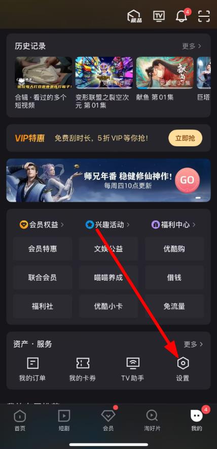 1、打開優(yōu)酷app,點(diǎn)擊底部導(dǎo)航欄我的。