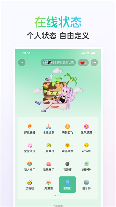 個性裝扮:主題、名片、彩鈴、氣泡、掛件自由選。