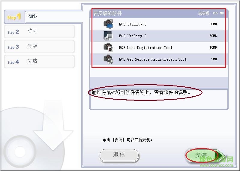 4.選擇需要安裝的軟件,總共有四個(gè),用戶根據(jù)需要選擇安裝,可以將鼠標(biāo)放在軟件名稱(chēng)上查看詳細(xì)說(shuō)明;選擇好后,點(diǎn)擊”安裝“按鈕