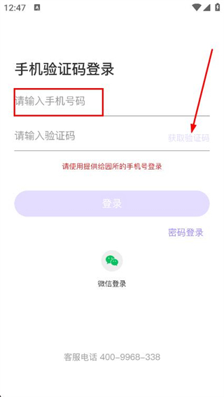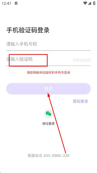 3、在驗證碼登錄頁面,輸入需要登錄的手機(jī)號并點擊獲取驗證碼。
