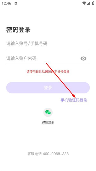 2、進(jìn)入登錄頁面后,找到并點擊右下方的手機(jī)驗證碼登錄選項。