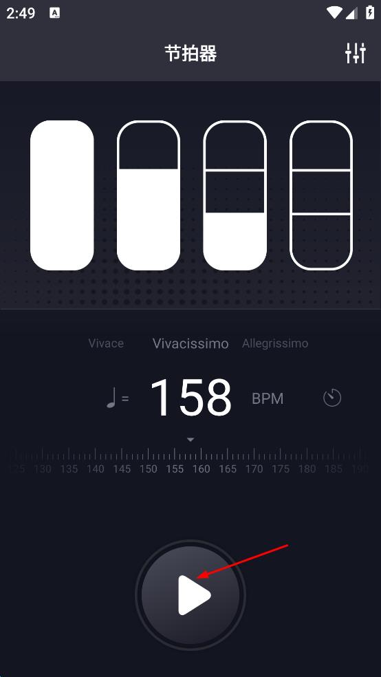 4、選擇完成后返回節(jié)拍器主界面,即可使用所選音色的節(jié)拍器功能。