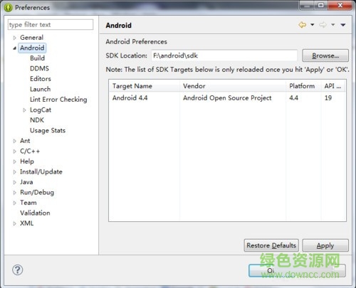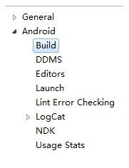 點擊左側(cè)菜單的android左邊的小三角形,拉開菜單