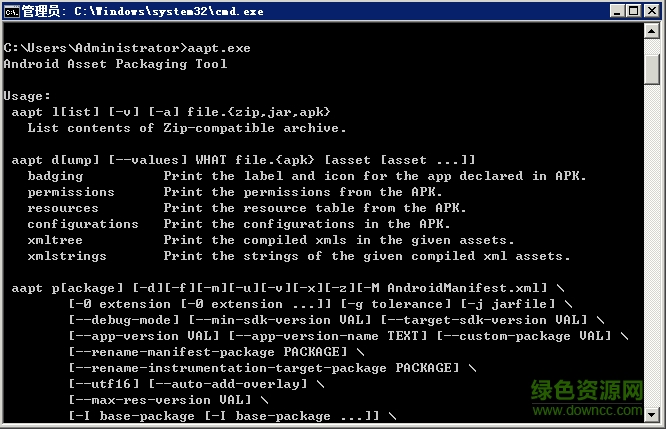 aapt即Android Asset Packaging Tool,在SDK的build-tools目錄下。該工具可以查看,創(chuàng)建, 更新ZIP格式的文檔附件(zip, jar, apk)。也可將資源文件編譯成二進制文件,盡管你可能沒有直接使用過aapt工具,但是build scripts和IDE插件會使用這個工具打包apk文件構(gòu)成一個Android 應(yīng)用程序。在使用aapt之前需要在環(huán)境變量里面配置SDK-tools路徑,或者是路徑+aapt的方式進入aapt。