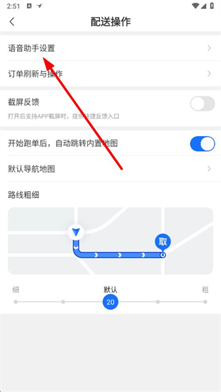4、在配送操作頁面,點擊語音助手設(shè)置選項。