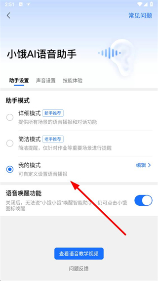 5、進(jìn)入后可設(shè)置小餓AI語音助手的模式等語音播報相關(guān)內(nèi)容。