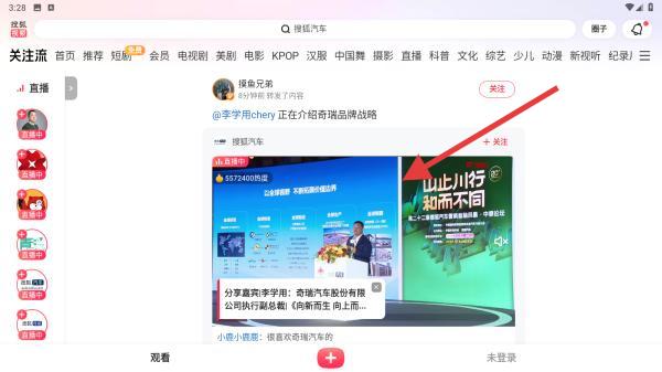 1、在關(guān)注流頁(yè)面中可以看到很多時(shí)下熱門(mén)的直播的視頻,都是根據(jù)用戶口味進(jìn)行推薦的,可以進(jìn)行篩選關(guān)注。