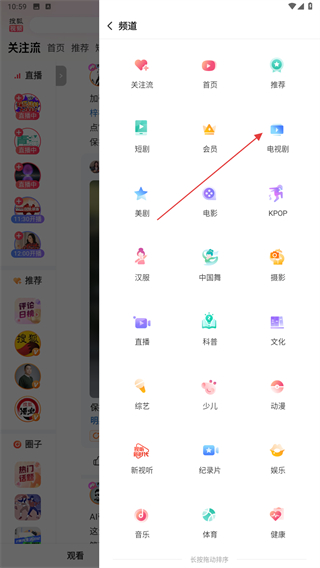 2、在右側(cè)彈出的頻道界面內(nèi),點(diǎn)擊電視劇的按鈕。