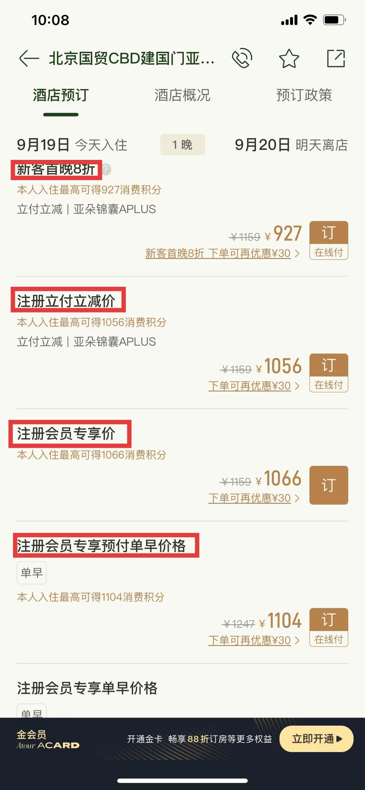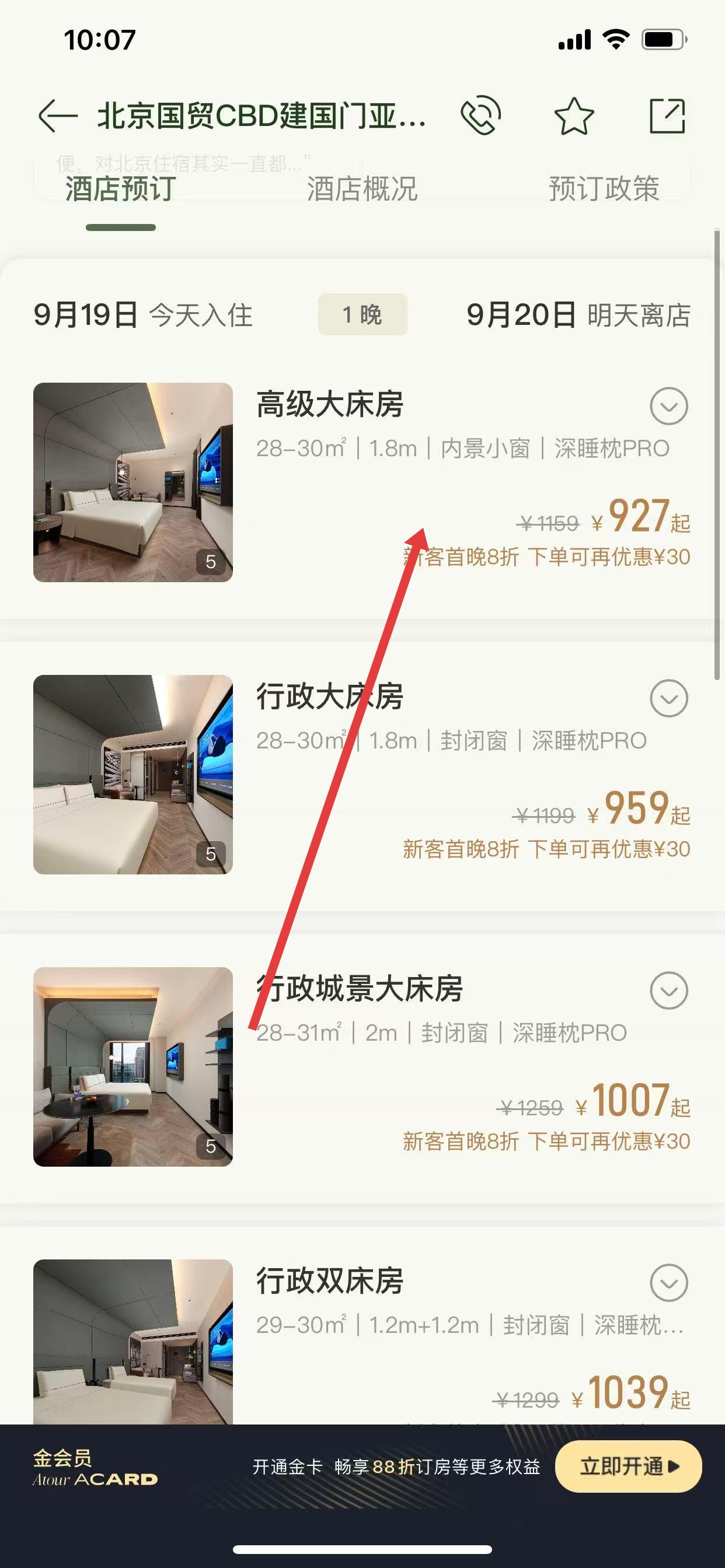 5、對(duì)比帶有新客首晚8折、注冊(cè)立付立減價(jià)、注冊(cè)會(huì)員專(zhuān)享價(jià)等標(biāo)注的價(jià)格,選擇最便宜的房型。