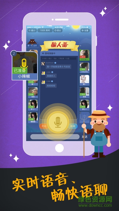 聲優(yōu)狼人殺是一款非常燒腦的狼人殺游戲,游戲玩法簡單每位職業(yè)人物都擁有特殊任務(wù),殺人游戲燒腦特輯,非??简炌婕业牟呗詰?zhàn)術(shù)。快來綠色資源網(wǎng)下載體驗吧!